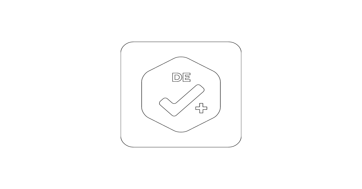 The Preregistered-DE-Plus square icon provides a compact variant of the enhanced Design and Endpoint preregistration badge optimized for grid layouts and standardized interface designs.