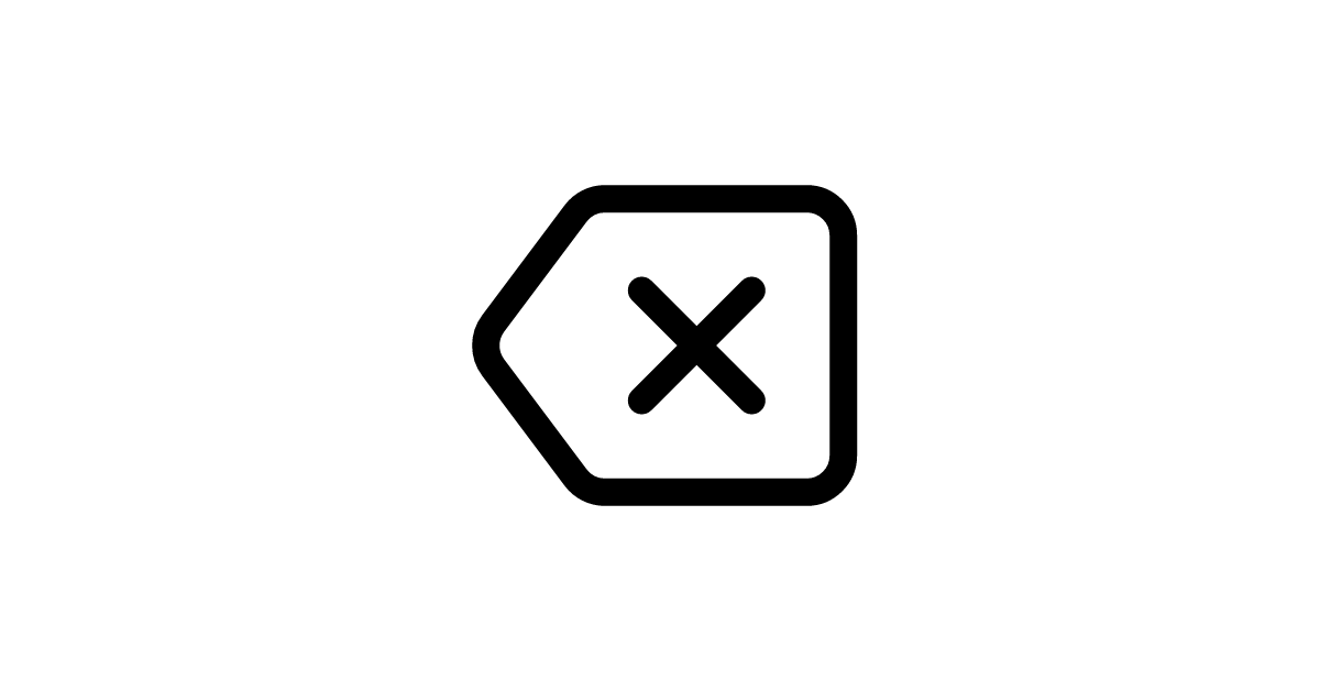 The backspace icon represents backward deletion and character removal functionality in text editing and input interfaces.