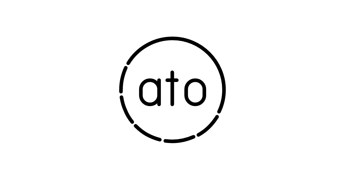 The ato icon features a stylized representation of a control or administration concept, with a combination of shapes suggesting a centralized authority.
