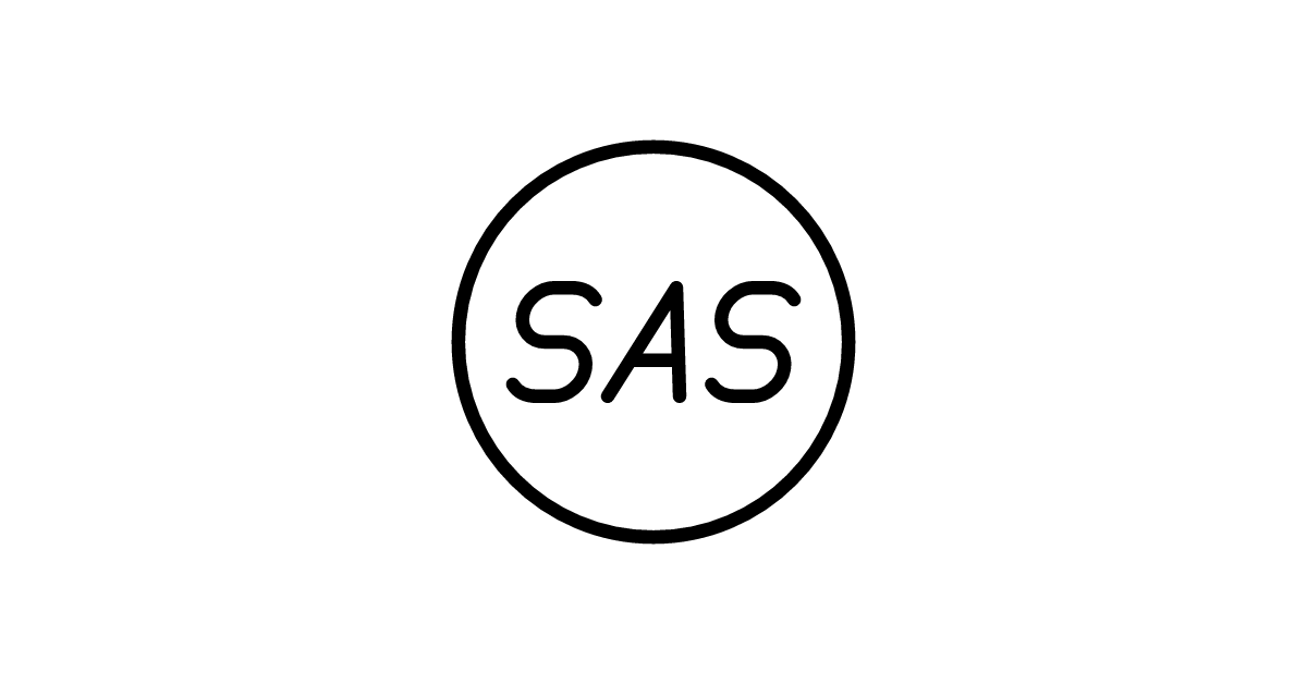 The Sas icon represents a stylized shape or symbol related to statistical analysis or SAS software.