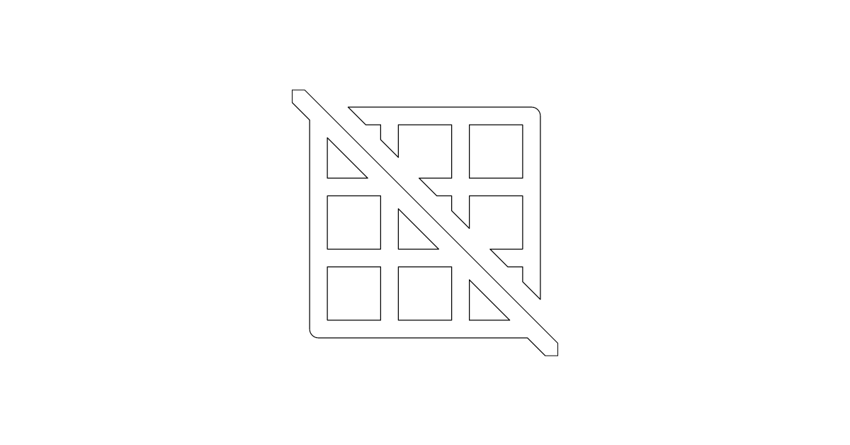 The grid-slash icon features a grid pattern with a diagonal slash through it, indicating deletion or removal of a layout or grid structure.
