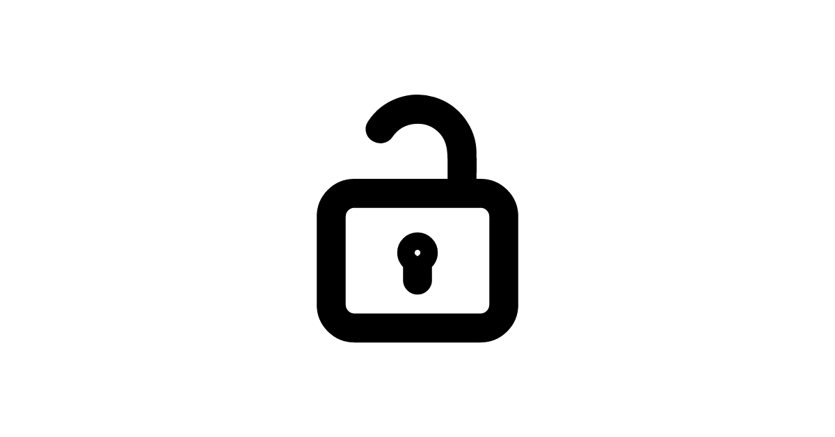 The unlock icon represents the action of unlocking or accessing something, depicted as an open lock.