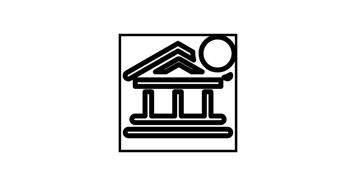 The bank-outline-badged icon represents a banking or financial concept with a badge symbol, signifying a status update or alert.