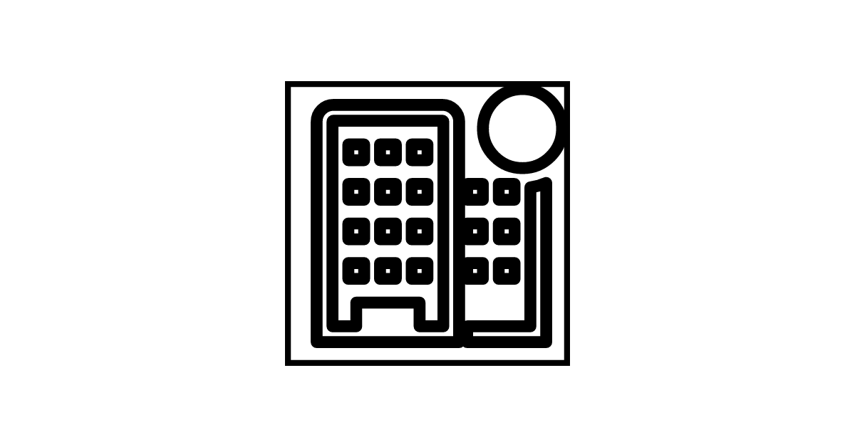 The building-outline-badged icon represents a building or structure with a badge or indicator.