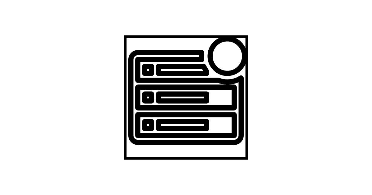 The rack-server-outline-badged icon features a server rack symbol with a badge, indicating a status or notification related to the server or hardware.