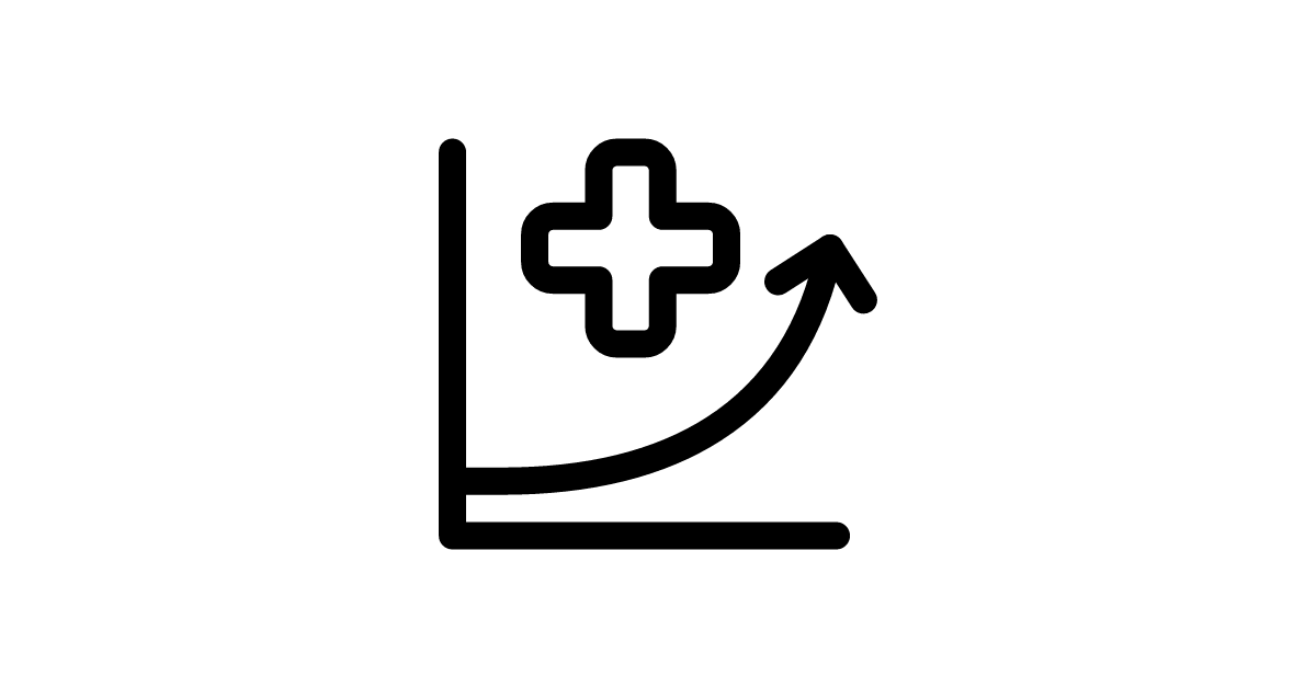 The graph cured increasing icon represents a statistical trend of increasing cured cases.