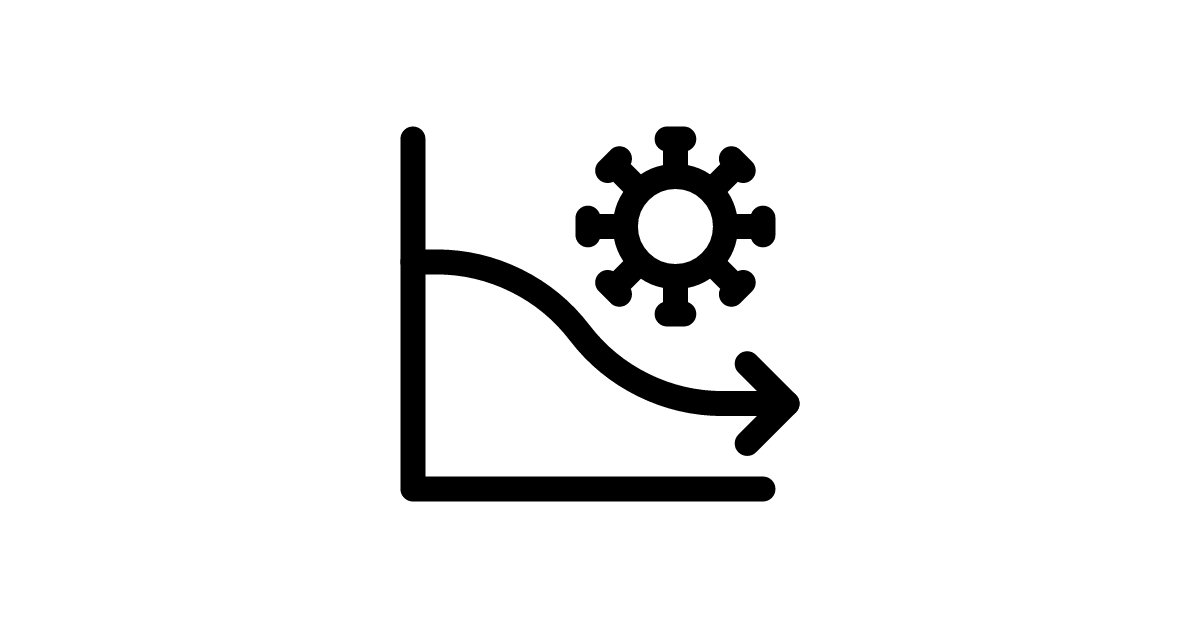 The graph infected decreasing icon represents a statistical trend of decreasing infected cases.