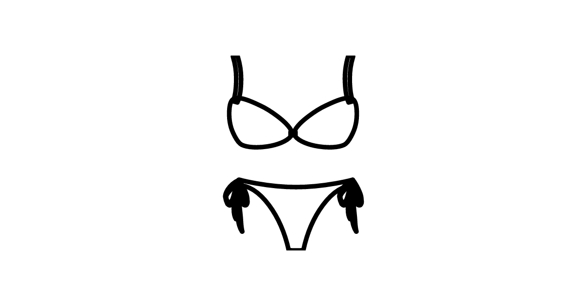 The bikini icon represents a type of swimwear, typically a two-piece garment for women, originating from the 1940s.
