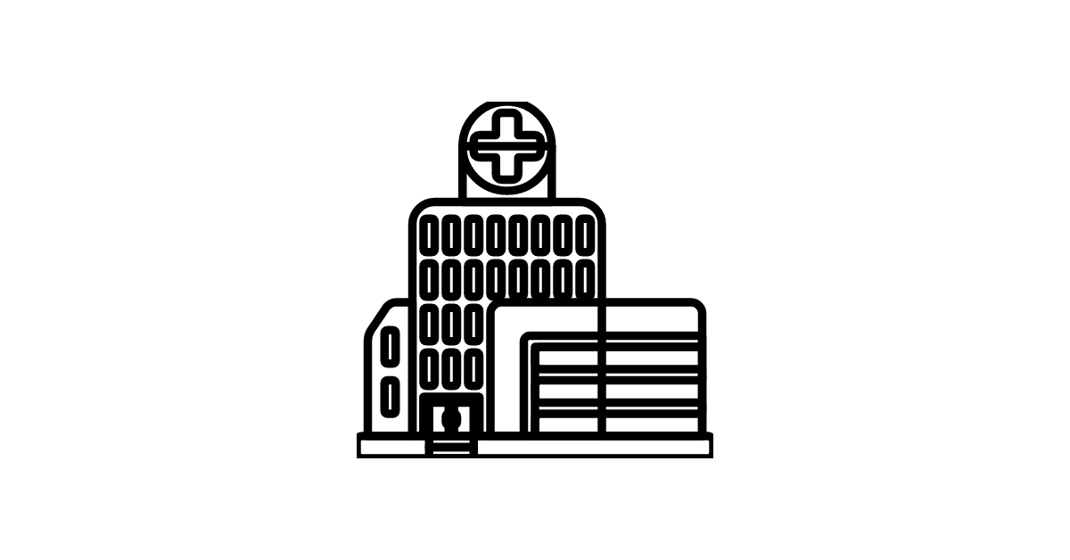 The hospital icon represents a medical institution where patients receive treatment and care.