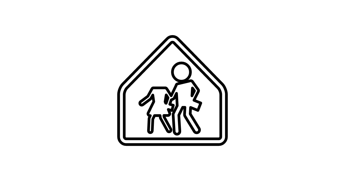 The children crossing icon represents a warning sign for pedestrian traffic, specifically indicating that children may be crossing the road.