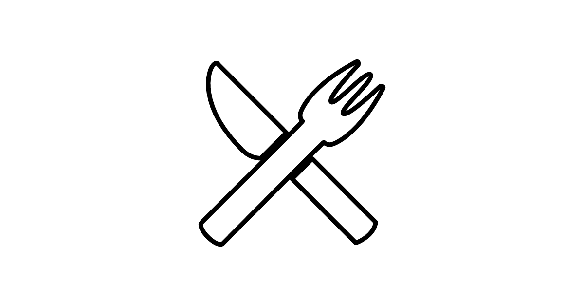 The fork-and-knife icon represents a pair of eating utensils, a fork and a knife, often used to express food or dining.