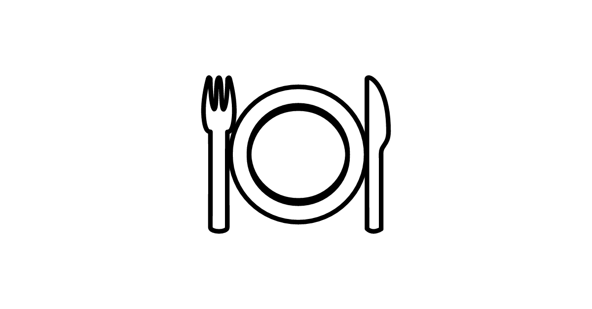The fork-and-knife-with-plate icon represents a setting for eating, including a plate, a fork, and a knife.