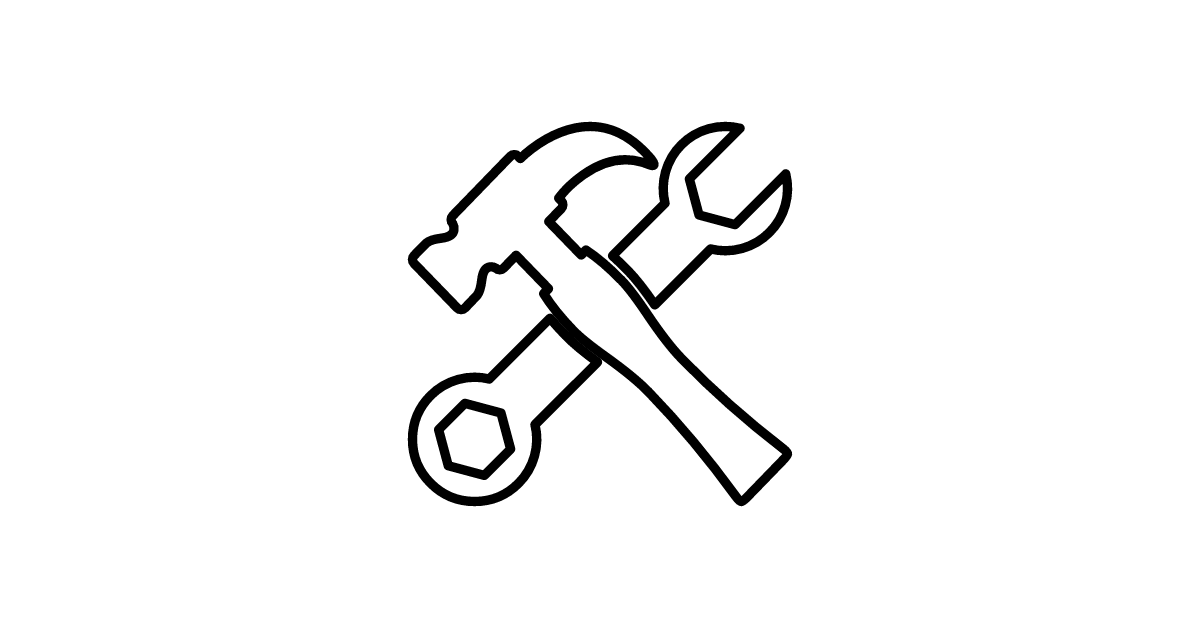 The hammer and wrench icon represents a combination of tools used for repair, maintenance, or construction, symbolizing DIY projects, repair work, or technical maintenance.