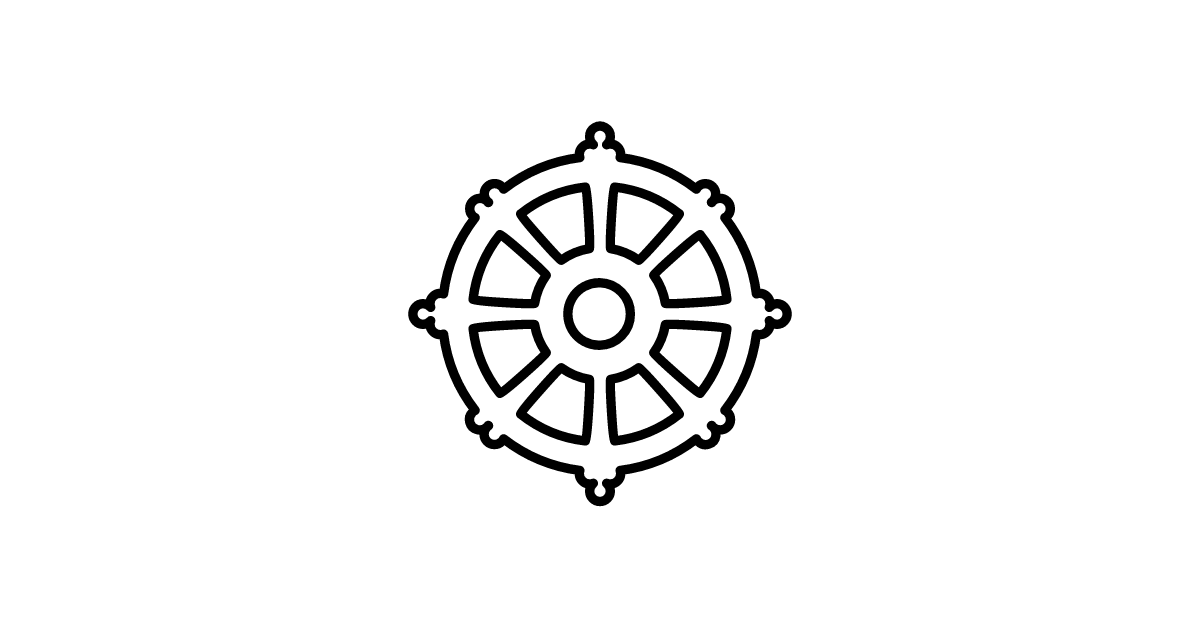 The wheel-of-dharma icon represents a Buddhist symbol, signifying the cycle of life and the path to enlightenment.