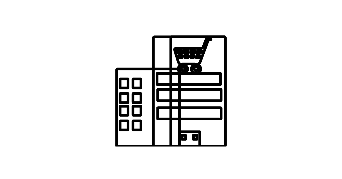 The department store icon represents a large retail establishment that sells a variety of products.
