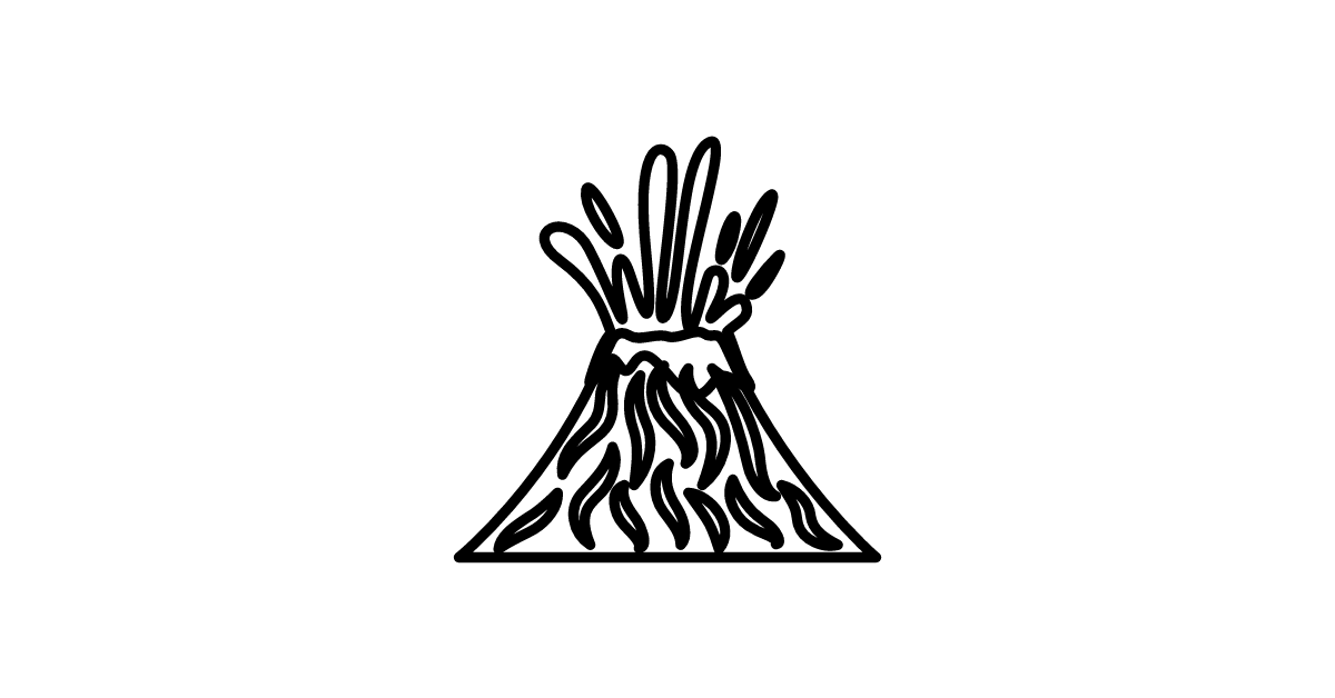The volcano icon represents a landform that can erupt with molten rock and ash.