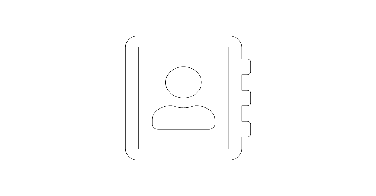The address book icon represents a collection of contacts or addresses, often used in digital communication and organization tools.