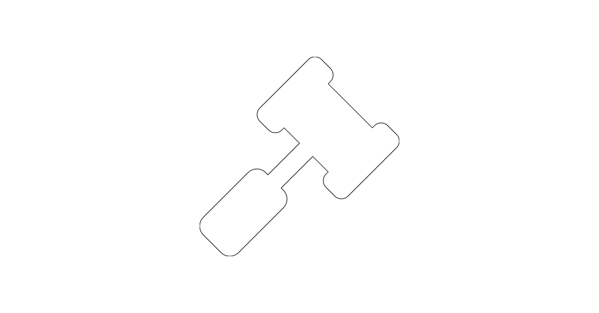 The gavel icon represents a judge's hammer, a symbol of authority and justice in a courtroom.