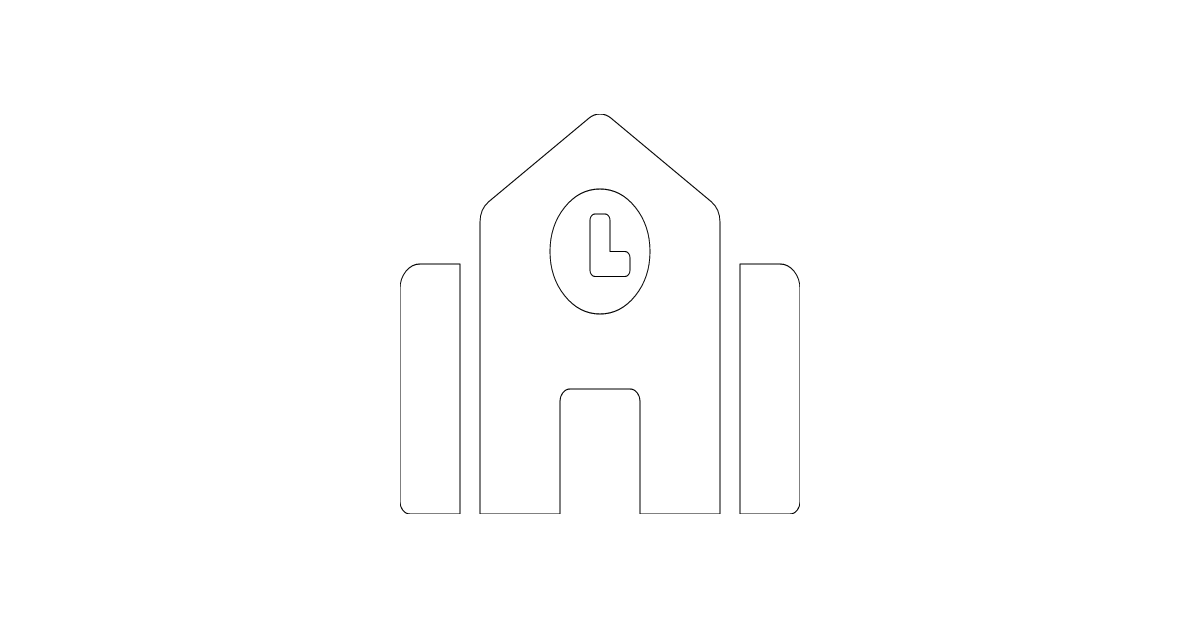 The school icon represents a place of learning and education.