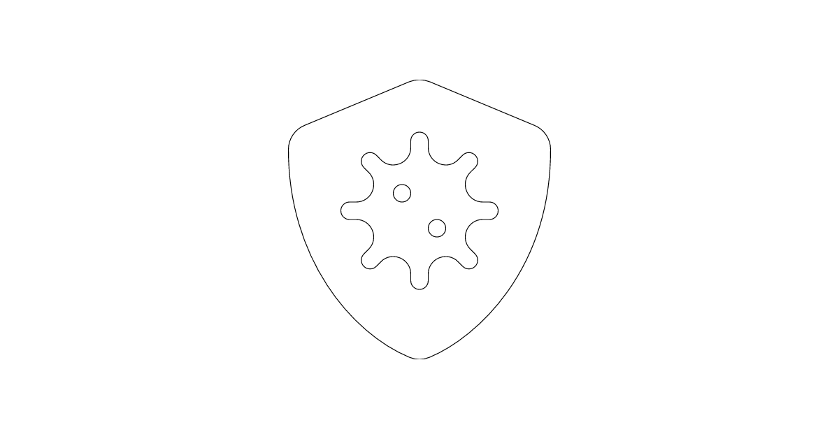 The shield-virus icon represents a shield symbol with a virus theme, often used for antivirus and malware protection purposes.