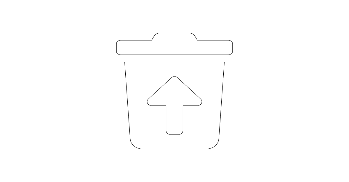 The trash-restore icon represents the action of restoring or recovering deleted data, often used in digital contexts such as file recovery or data backup.
