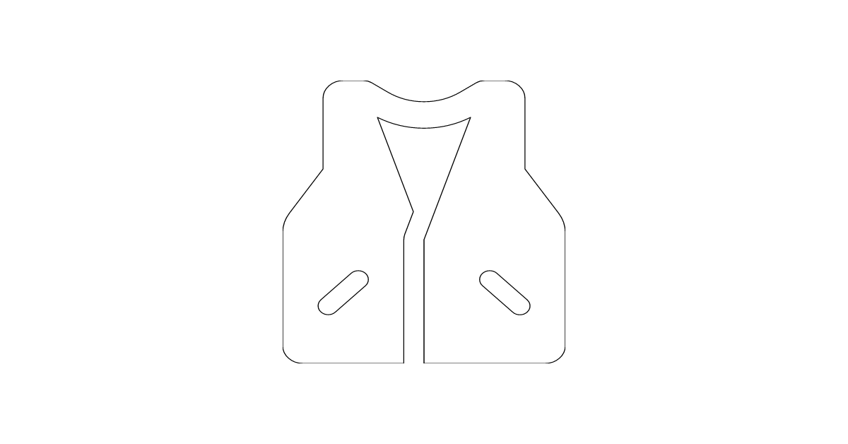 The vest icon represents a type of clothing, specifically a vest, which is a garment worn over the upper body and typically has no sleeves.