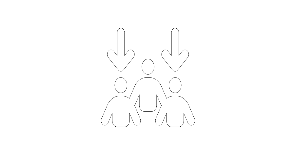 The 'arrows-down-to-people' icon represents communication or information flow to a group of people, commonly used in user interface (UI) design.