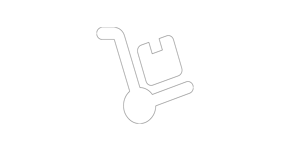 The dolly icon represents a wheeled platform for moving goods, symbolizing logistics and transportation.