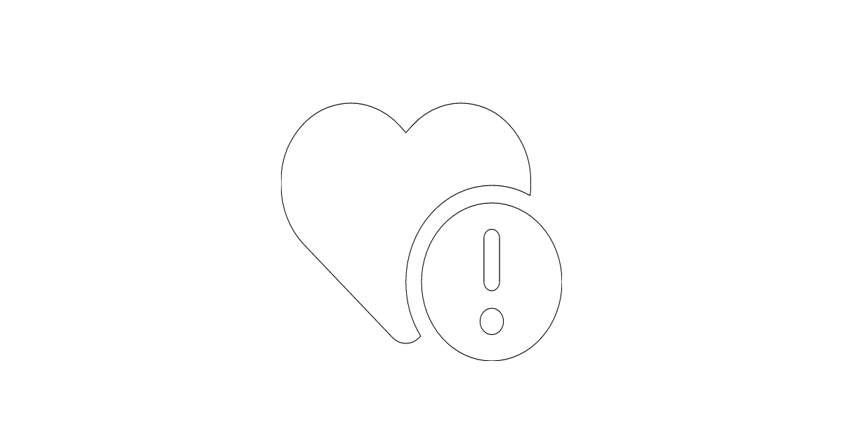 The heart-circle-exclamation icon represents a heart with an exclamation mark, often symbolizing warning, caution, or concern.