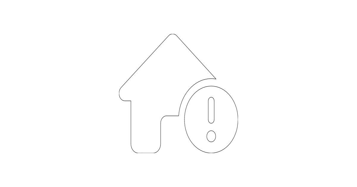 The house-circle-exclamation icon represents a residential house with a circle and an exclamation mark, symbolizing a home or dwelling place with a focus on alertness or warning.
