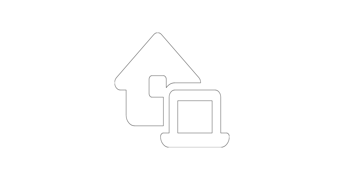 The house-laptop icon represents a residential house with a laptop, symbolizing a home or dwelling place with a focus on technology or remote work.
