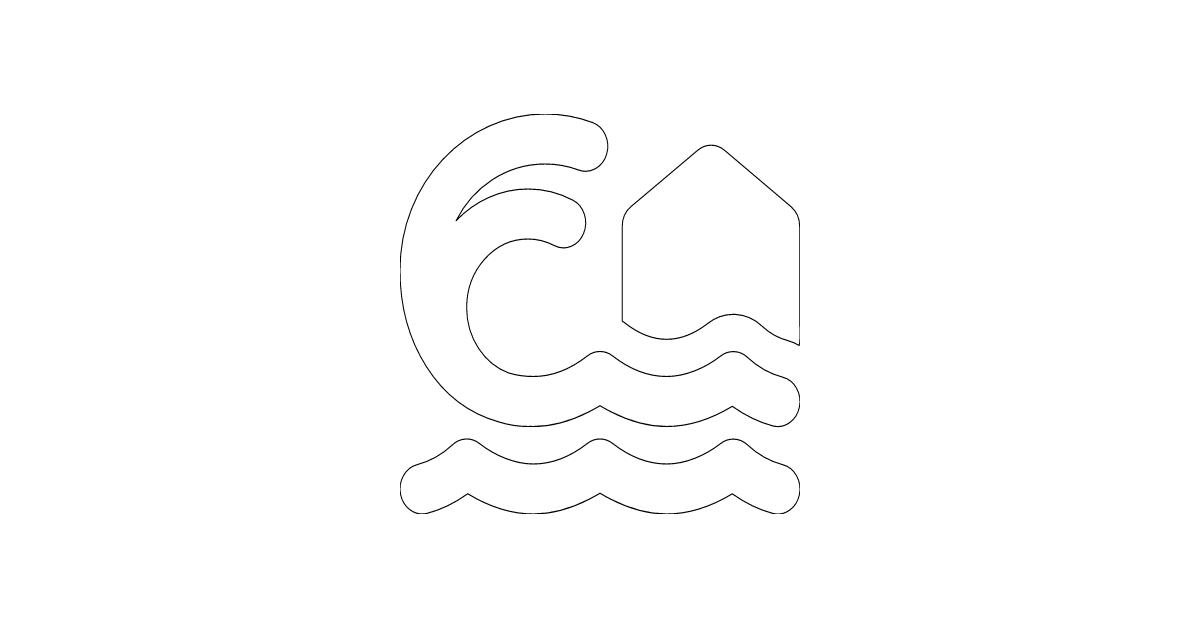 The house-tsunami icon represents a house or home affected by a tsunami, often used to indicate a disaster or emergency situation.