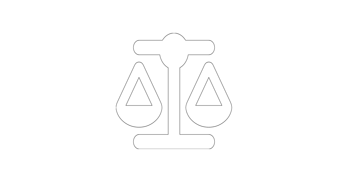 The scale balanced icon represents a symbol of justice, fairness, and balance, often used in law, courts, and judicial systems.
