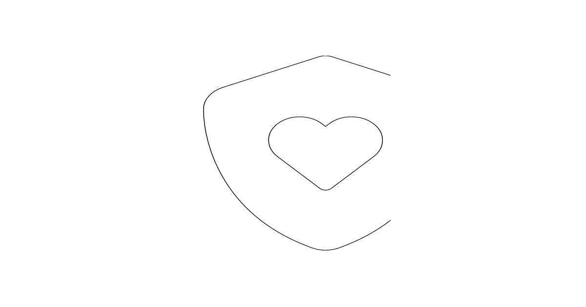 The shield-heart icon represents a shield with a heart inside, often used to indicate protection or safety with a focus on care or love.