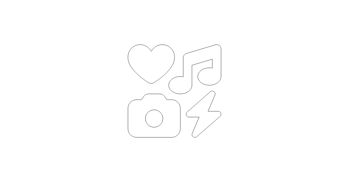 The heart-music-camera-bolt icon represents a combination of love, music, and energy.