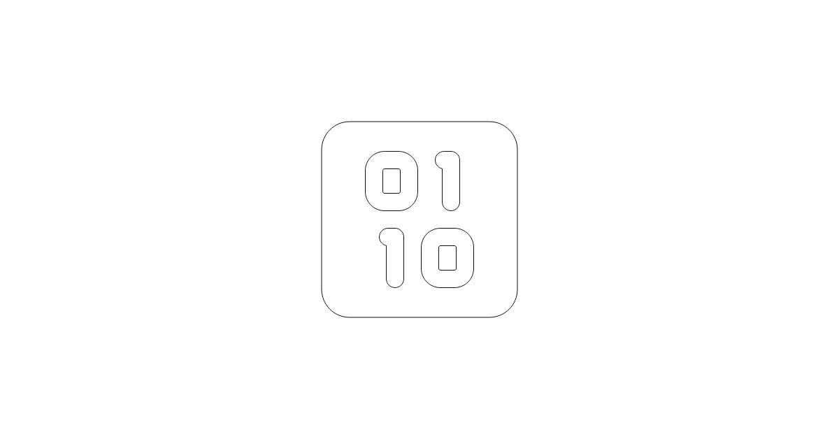 The square binary icon represents a stylized binary code symbol enclosed in a square.