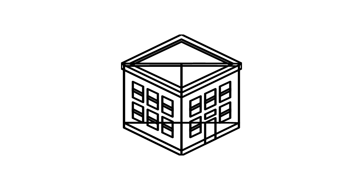 The building icon represents corporate entities and business locations in mapping applications and directory services.