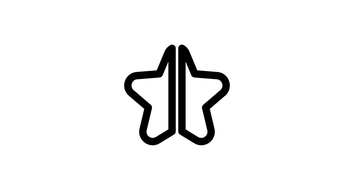 The star half stroke solid icon represents a rating or feedback system in a solid design style with a stroke.