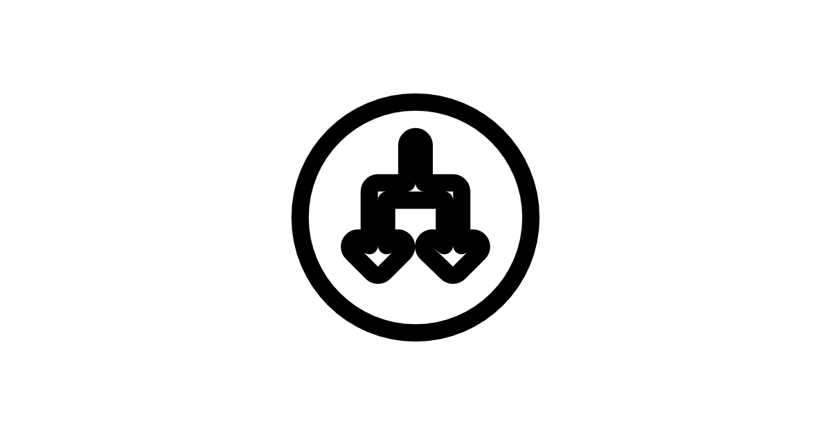 The arrow-circle-down-split-24-filled icon represents a downward arrow with a split or diverging line, indicating multiple directions or options, filled with color.