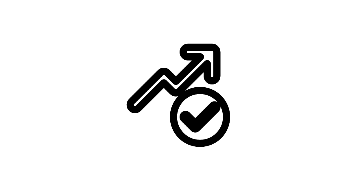 The arrow-trending-checkmark-24-filled icon represents a filled trending arrow with a checkmark and a larger size, typically used to indicate a substantial positive trend or successful outcome in a specific metric.
