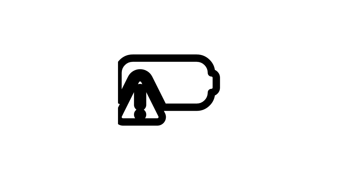 The battery warning filled icon represents a battery with a warning sign, indicating low battery levels or a charging issue.