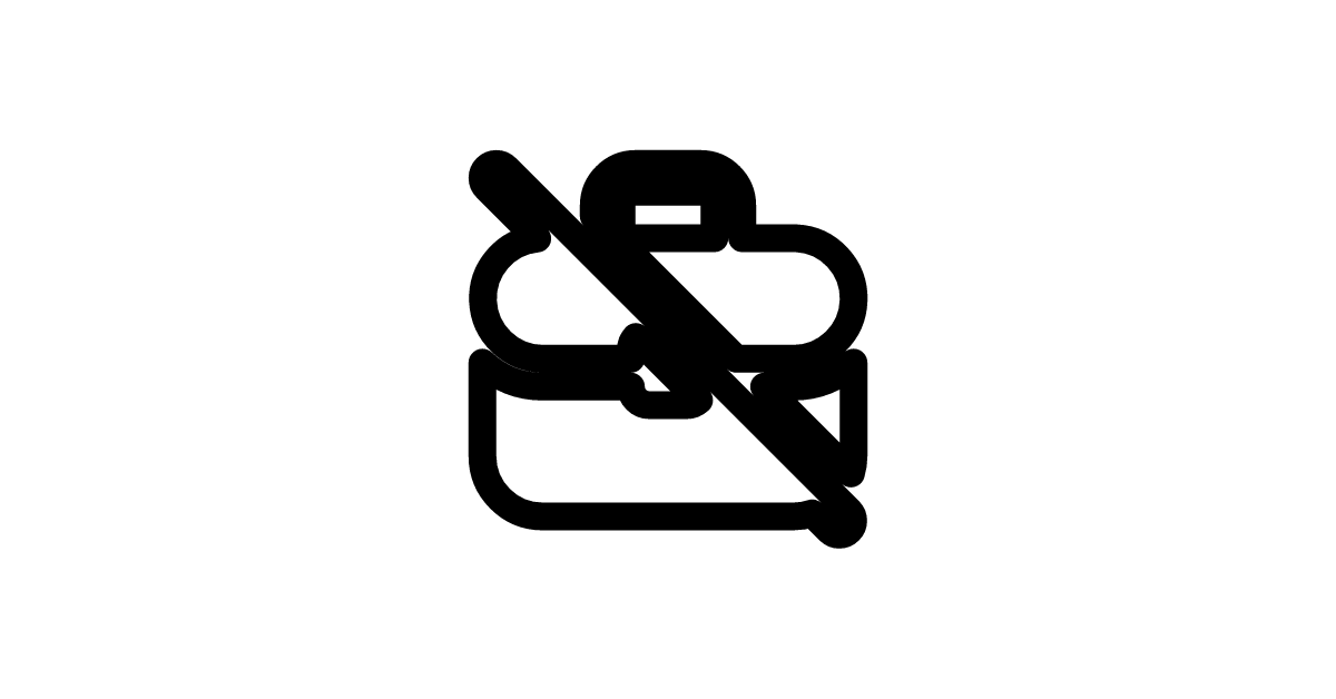 The briefcase-off-24-filled icon represents a medical briefcase with a cancellation or removal symbol, signifying the end of medical services or healthcare.
