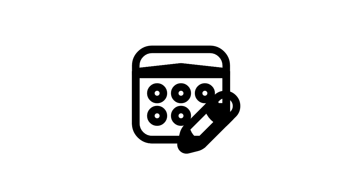 The calendar-edit-24 icon represents a calendar edit, a symbol used to indicate editing and updating calendar events.