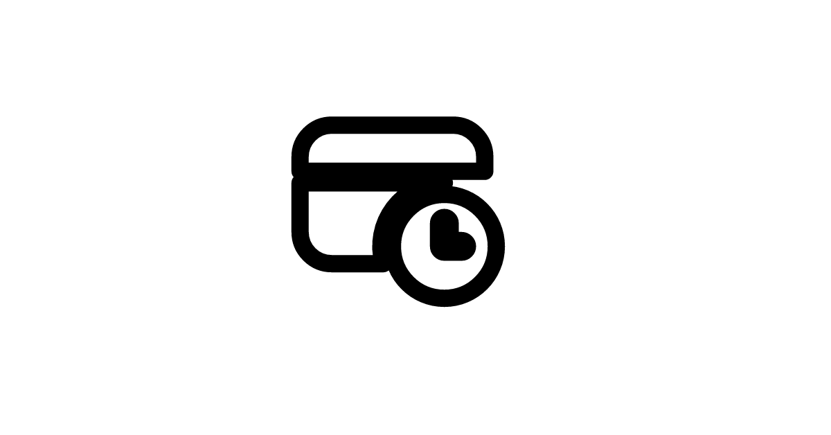 The credit-card-clock-20-filled icon represents a filled-style credit card with a clock, often used in payment and transaction contexts.