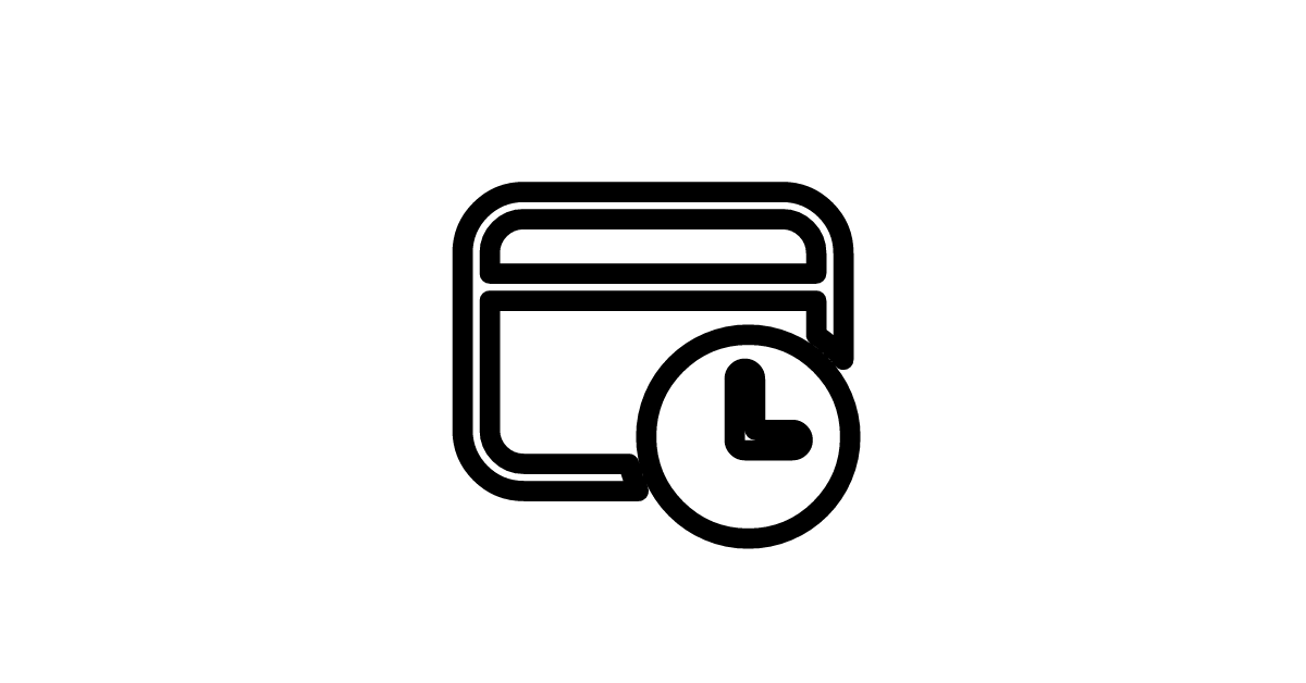 The credit-card-clock-32-regular icon represents a credit card with a clock, symbolizing payment processing with a time constraint.
