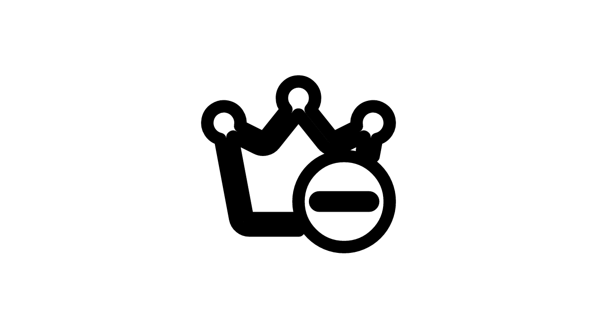 The crown-subtract-24-regular icon represents a crown with a subtraction symbol, often used to denote removal or decrease in status or power.