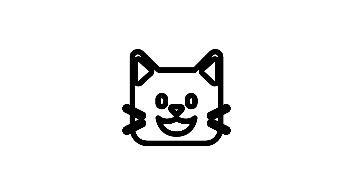 The cat-face icon represents a feline expression or emotion, symbolizing playfulness and curiosity.