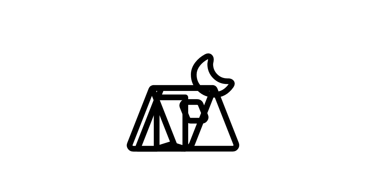 The tent icon represents a portable shelter, specifically a tent.