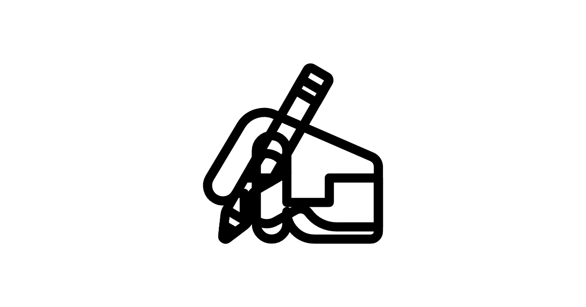 The writing hand medium icon represents a hand holding a pen or pencil, often used to symbolize writing, creativity, and literature in a medium or neutral tone.