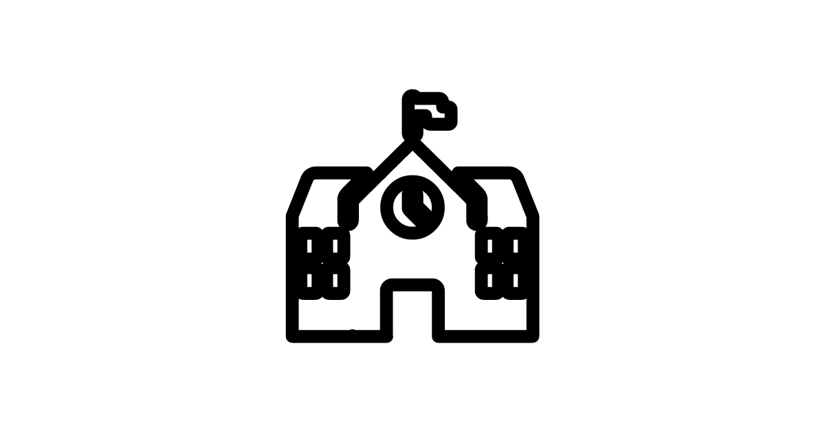 The school icon represents an educational institution, where students learn and teachers instruct.